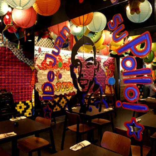 Hopping bi-level spot for rotisserie chicken & other Peruvian eats amid neon colors & warm woods.